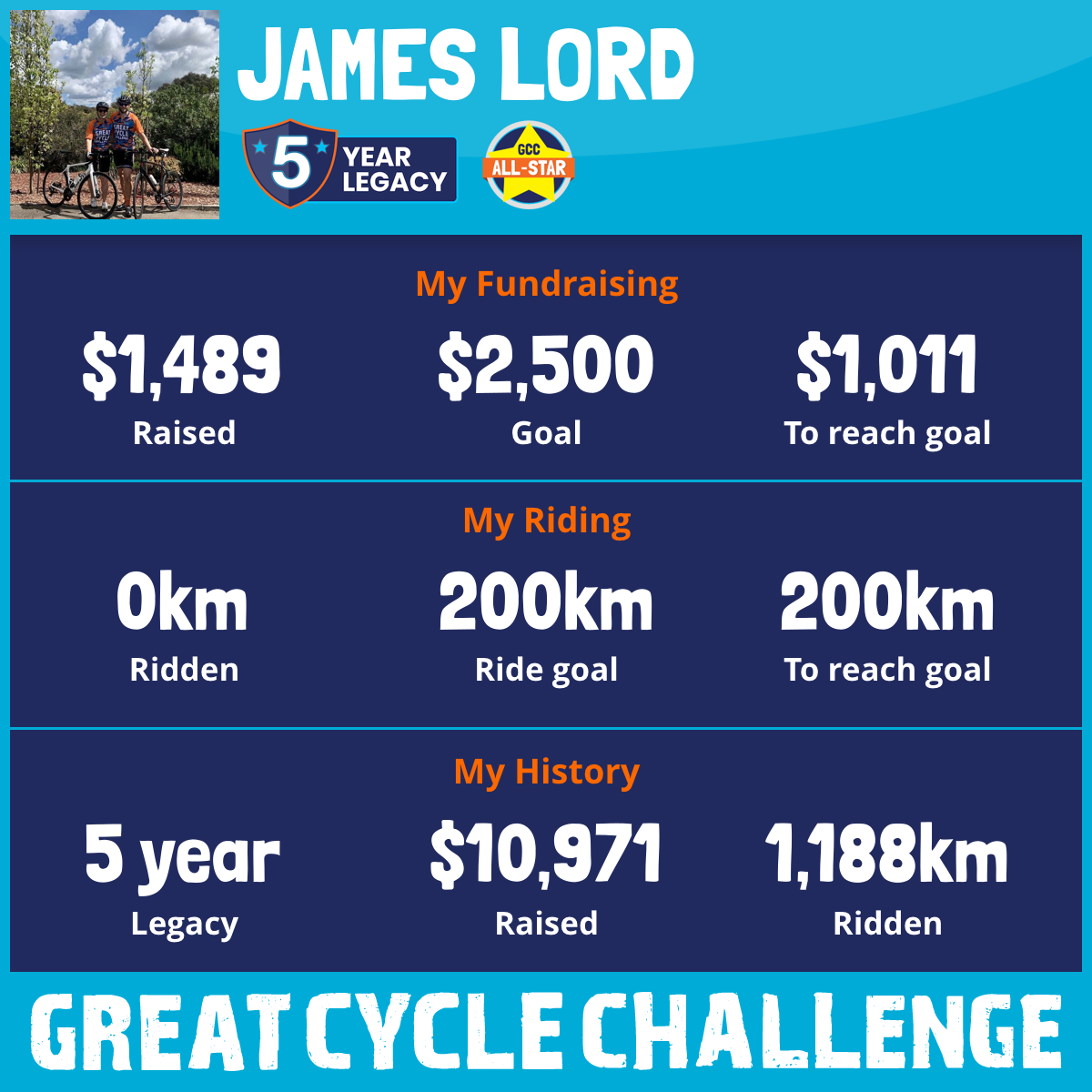 280 km Ridden$3,059 Raised2023