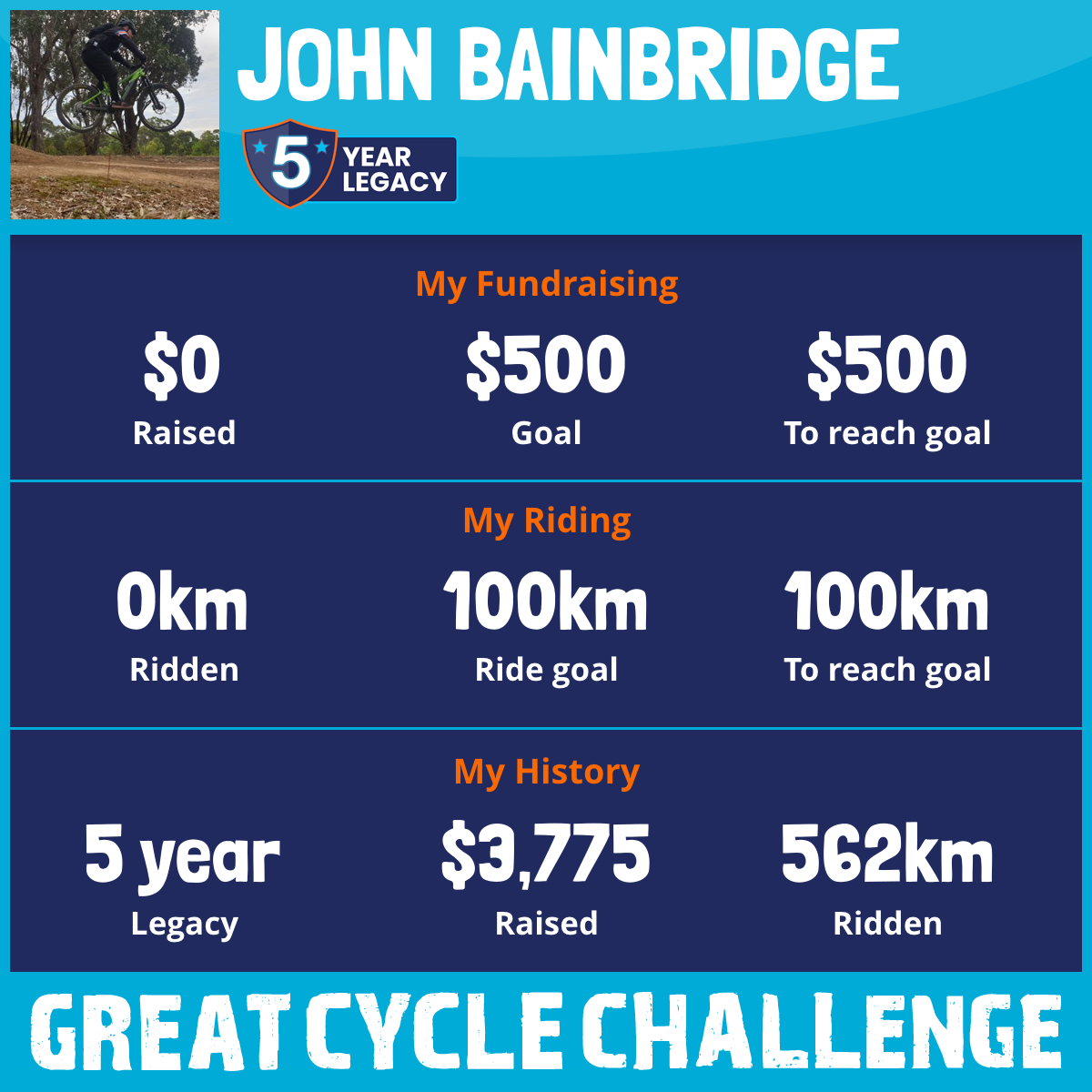 152 km Ridden$1,161 Raised2023