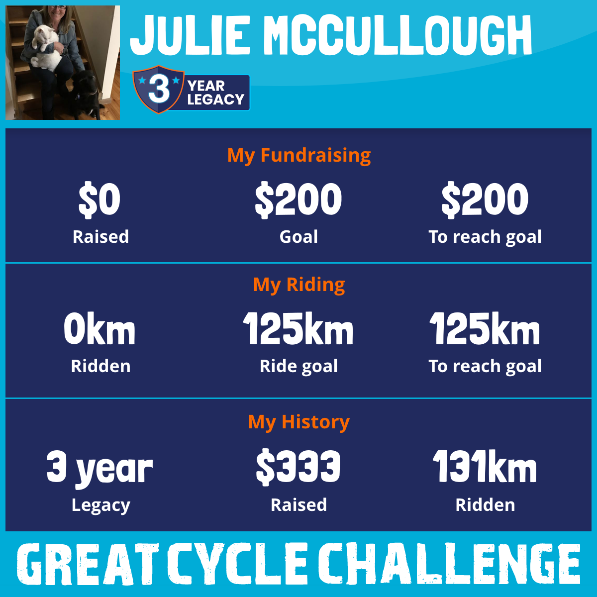 And so I am riding and raising funds to support the Children's Medical Research Institute to continue their work into the prevention, diagnosis, treatment and finding a cure for childhood cancer.
