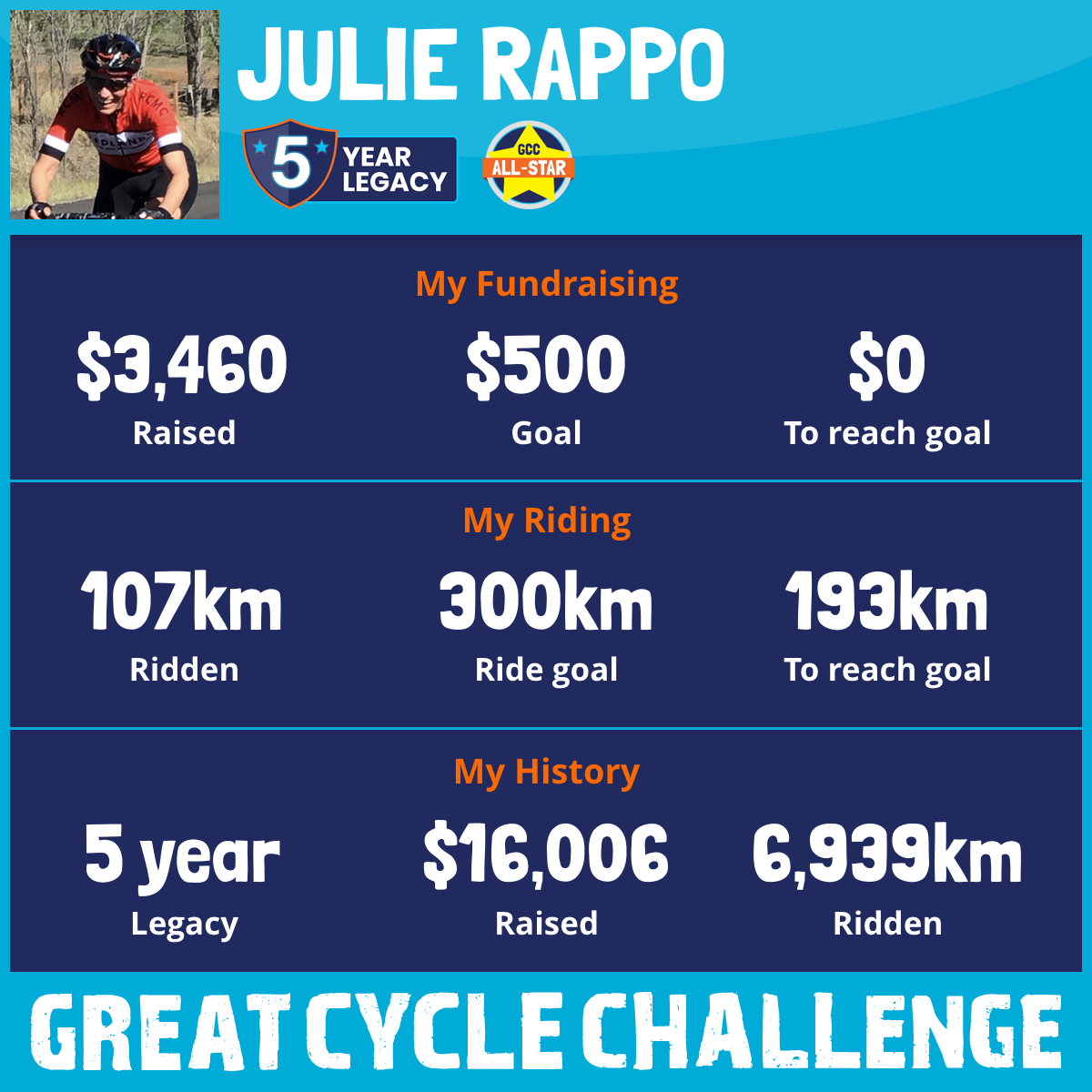 And so I am riding and raising funds to support the Children's Medical Research Institute to continue their work into the prevention, diagnosis, treatment and finding a cure for childhood cancer.