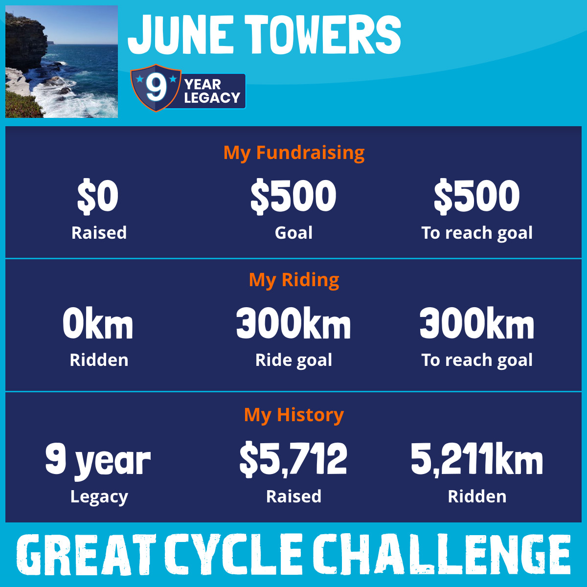 301 km Ridden$1,304 Raised2023