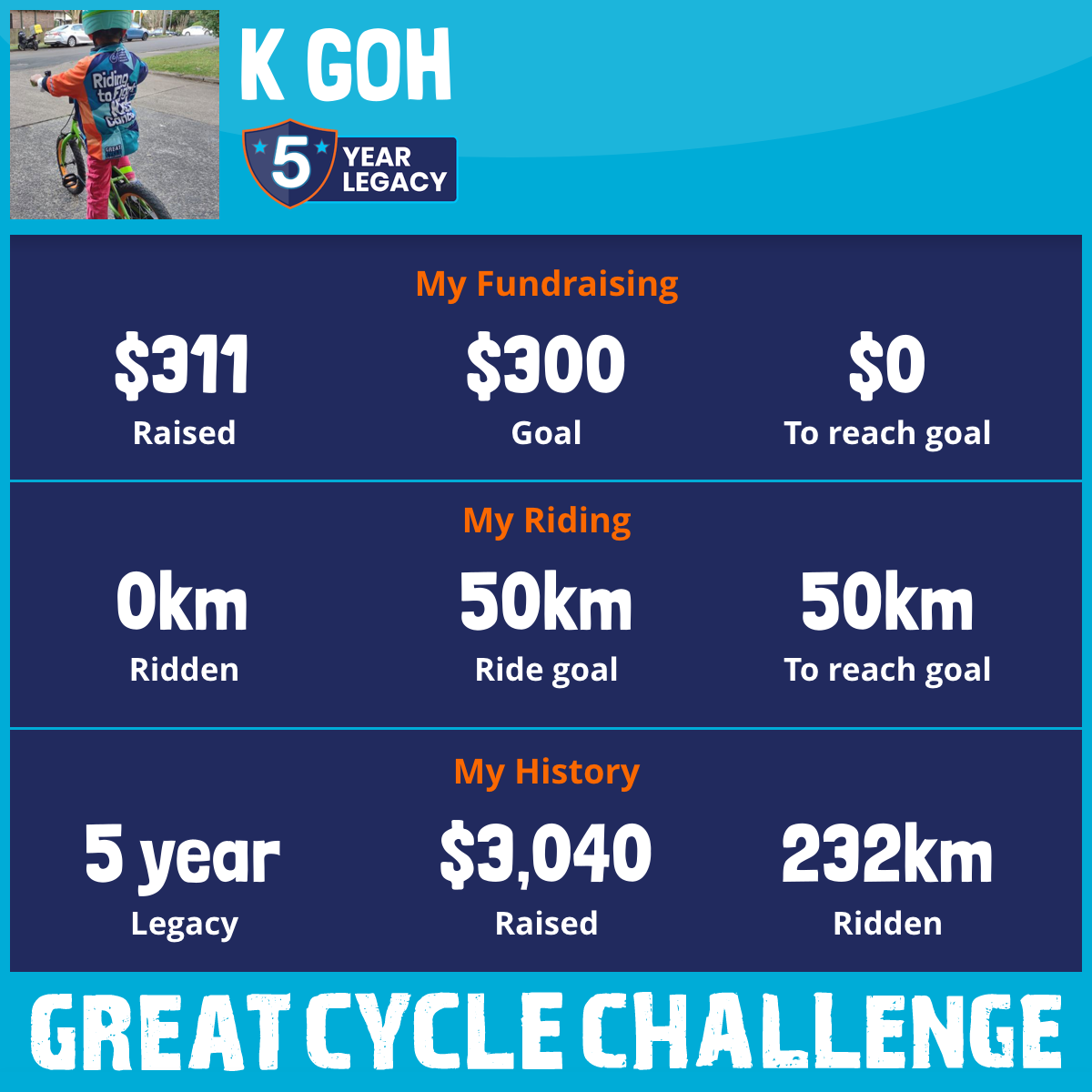 This October, I am taking part in the Great Cycle Challenge to fight kids' cancer! It's my 5th year I'm taking part. Please don't feel pressured to give big amounts as times are tough but even a gold coin donation is great as it means I feel supported by a lot more people.