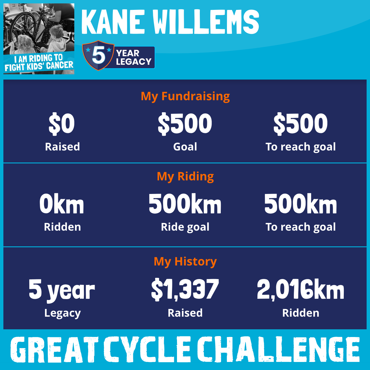 This October, I am taking part in the Great Cycle Challenge to fight kids' cancer!