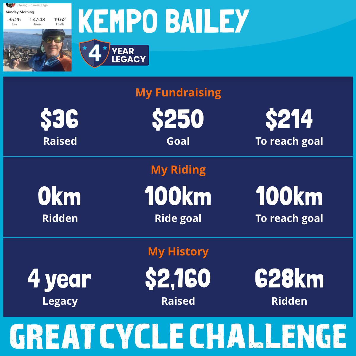 I am riding 100 km in memory of my myself, Im riding for every dad that cant live...cant eat breathe because his kid's got cancer. Please sponsor me and support my challenge to fight kids' cancer and save little lives.