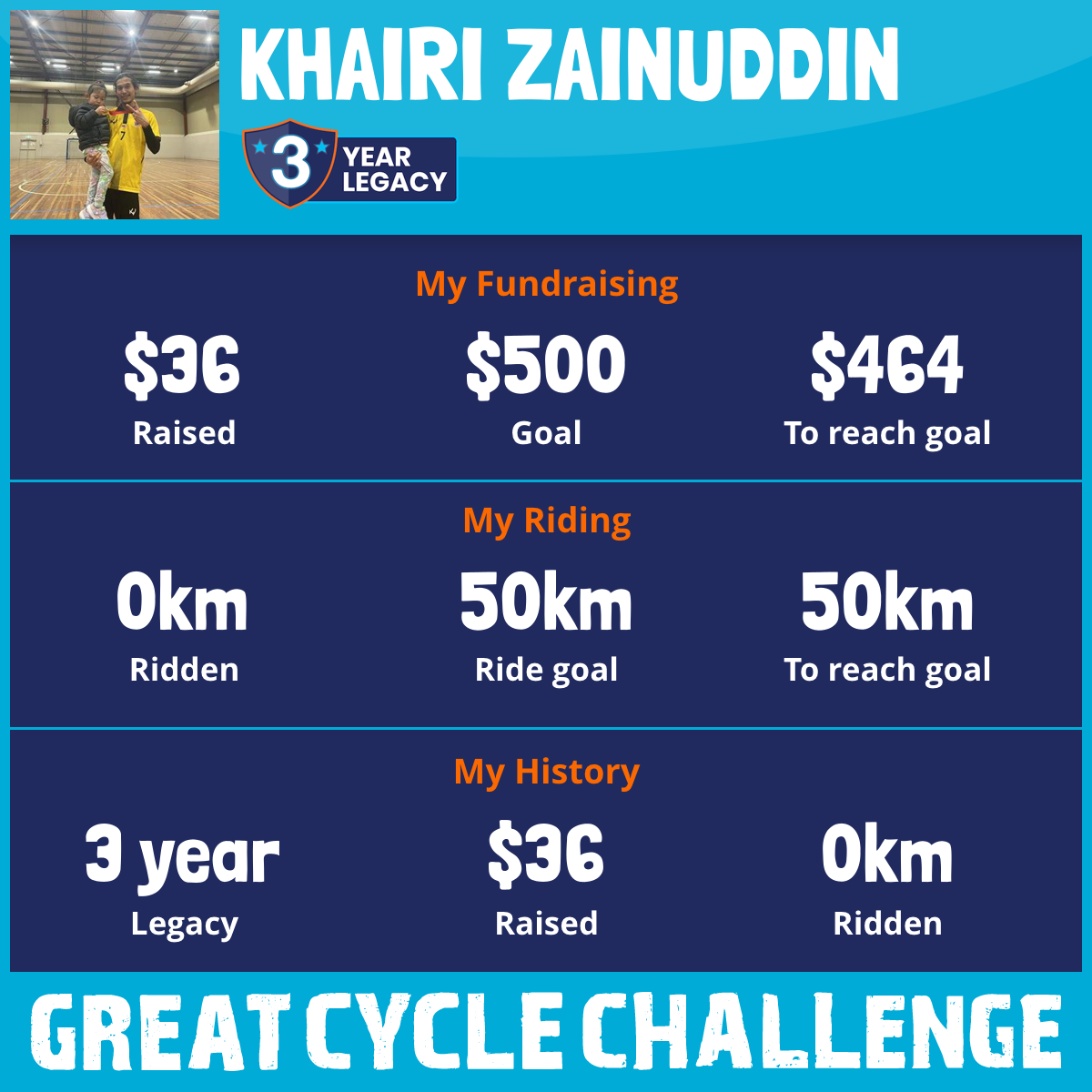 I am riding 50 km for Nurleli Idris & Nurlayla Khairi. Please sponsor me and support my challenge to fight kids' cancer and save little lives.