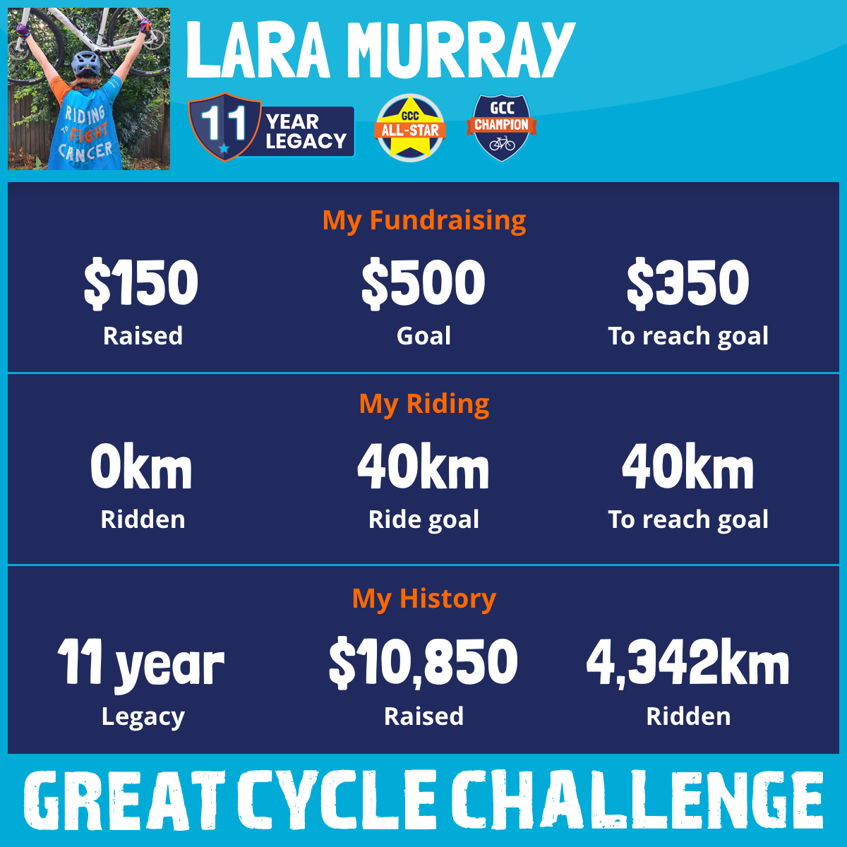 This October, I am taking part in the Great Cycle Challenge to fight kids' cancer!