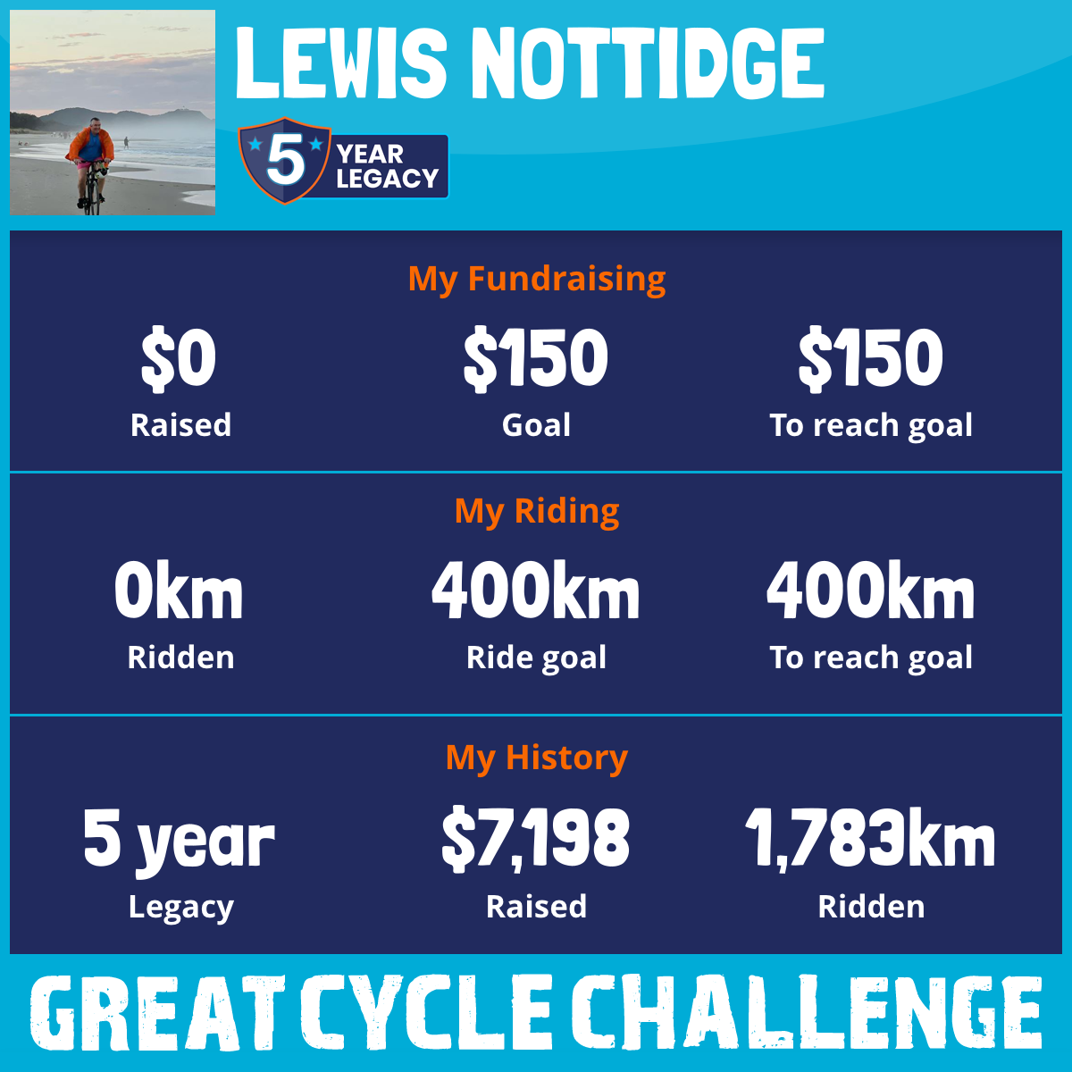 306 km Ridden$1,900 Raised2023