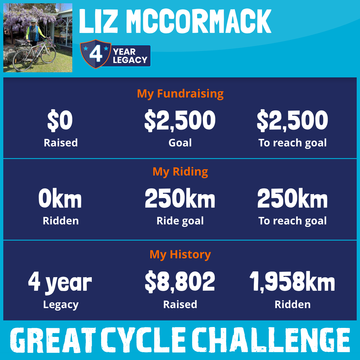 1,136 km Ridden$5,050 Raised2024