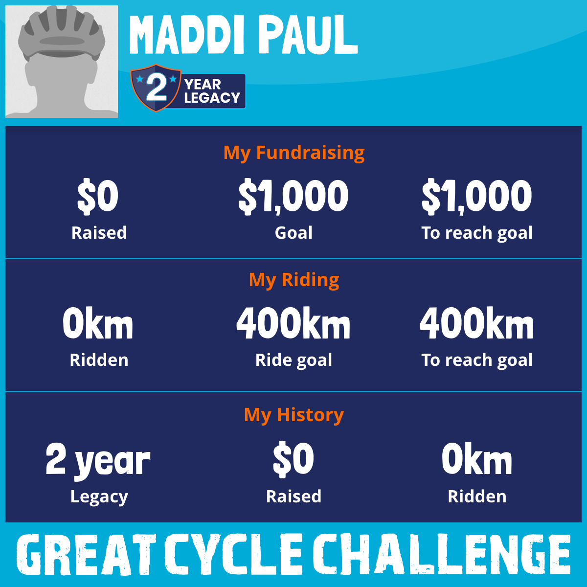 And so I am riding and raising funds to support the Children's Medical Research Institute to continue their work into the prevention, diagnosis, treatment and finding a cure for childhood cancer.