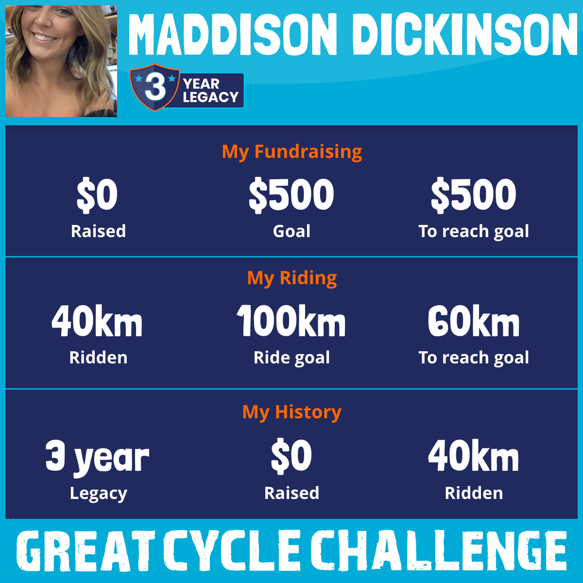 And so I am riding and raising funds to support the Children's Medical Research Institute to continue their work into the prevention, diagnosis, treatment and finding a cure for childhood cancer.