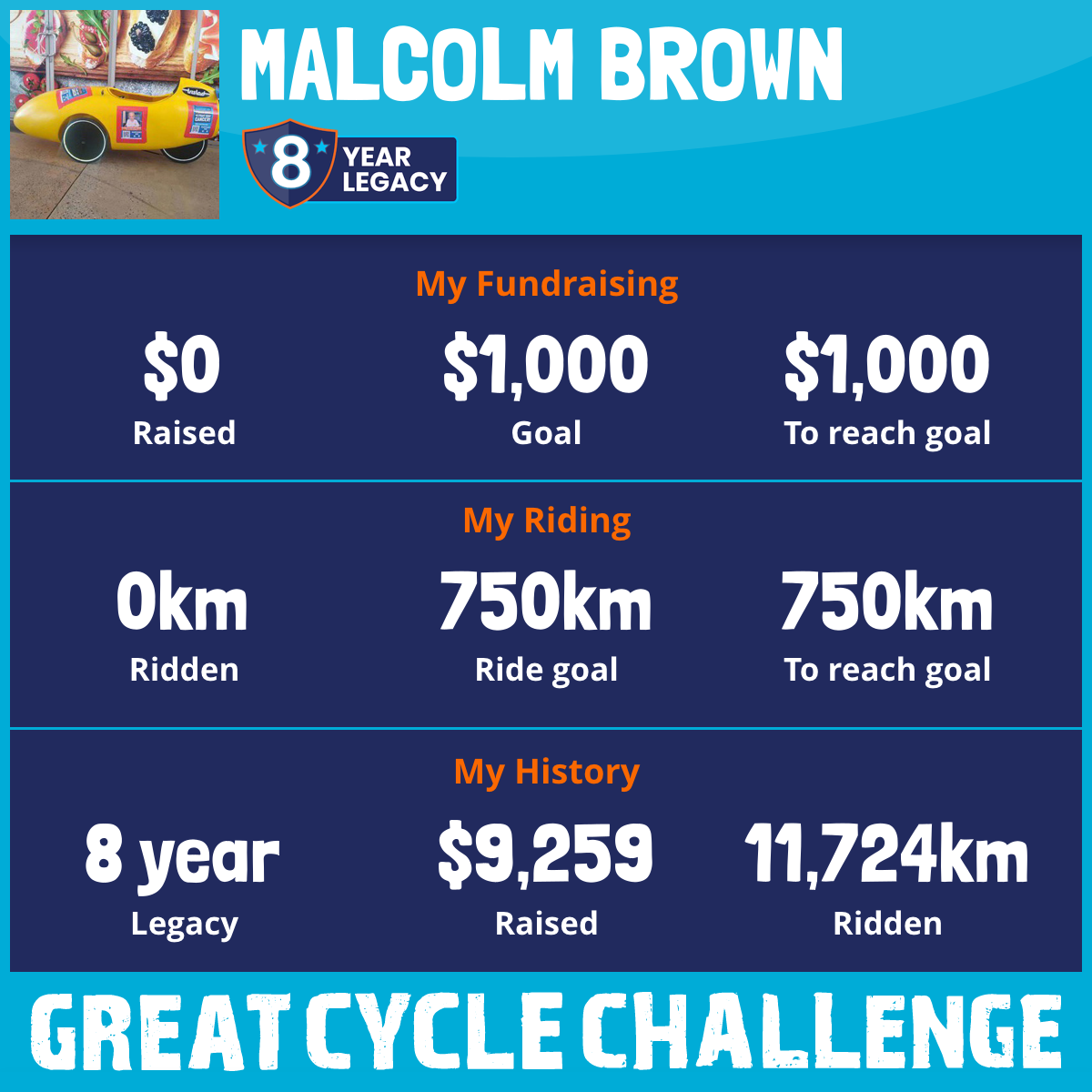 I am proud to say this is my 8th year riding the challenge and raising funds to fight kid’s cancer. Sadly kid's cancer has not been beaten yet and the treatments are still very hard on the children. Having had chemo I feel I have some understanding of the difficulty of what children face. It must be so hard for children to understand. Also, something many don’t understand is often the joy of chemo doesn’t always end when the treatment ends. So, anything you feel able to give will help researchers in their work to help children.