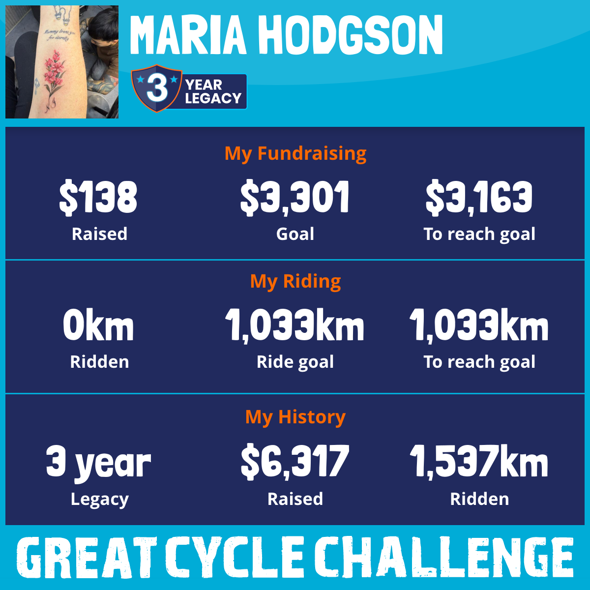 528 km Ridden$3,315 Raised2023