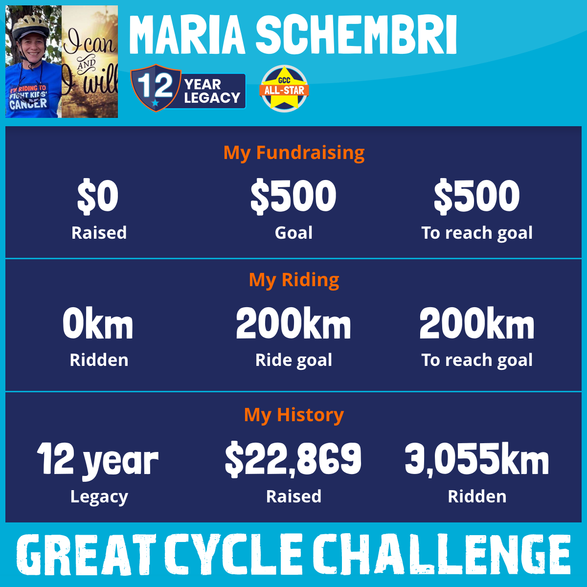 And so I am riding and raising funds to support the Children's Medical Research Institute to continue their work into the prevention, diagnosis, treatment and finding a cure for childhood cancer.