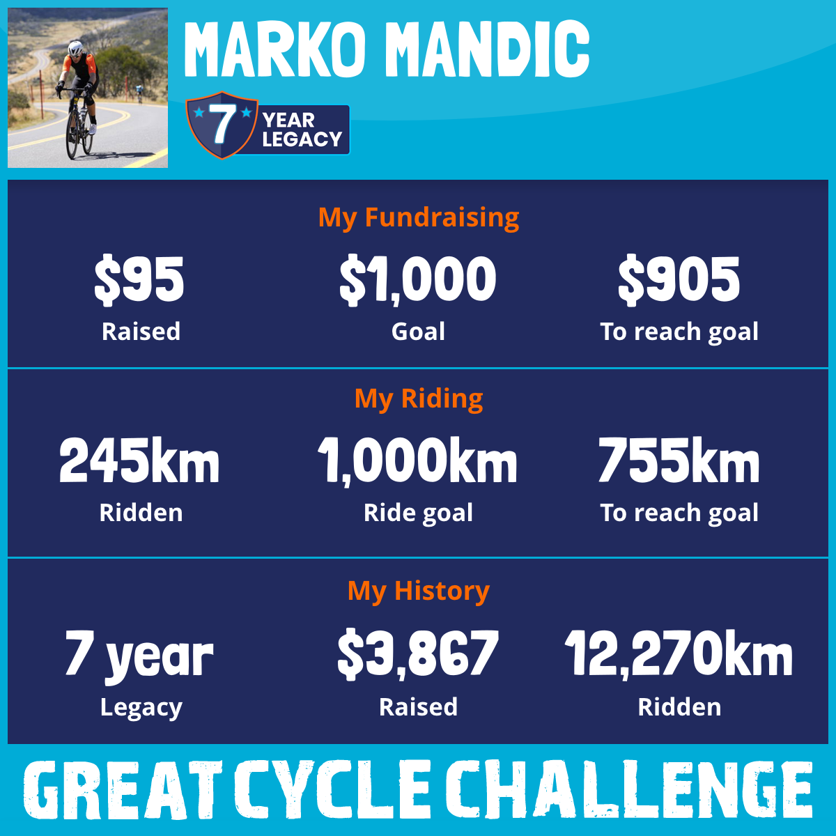 And so I am riding and raising funds to support the Children's Medical Research Institute to continue their work into the prevention, diagnosis, treatment and finding a cure for childhood cancer.