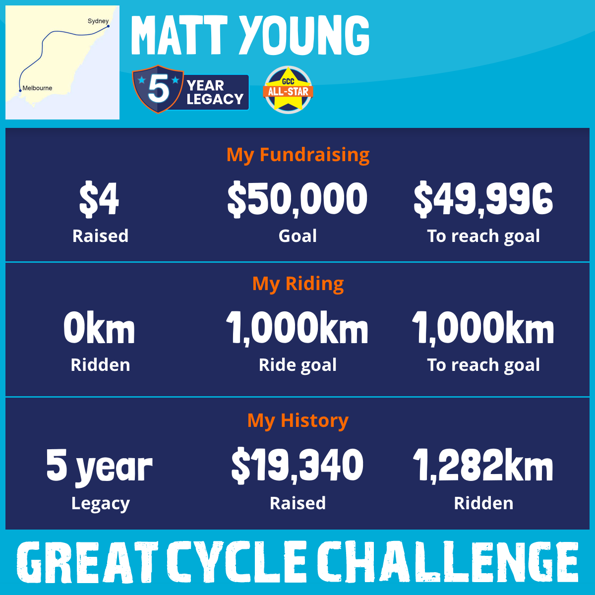 👉 https://greatcyclechallenge.com.au/riders/MattYoung1