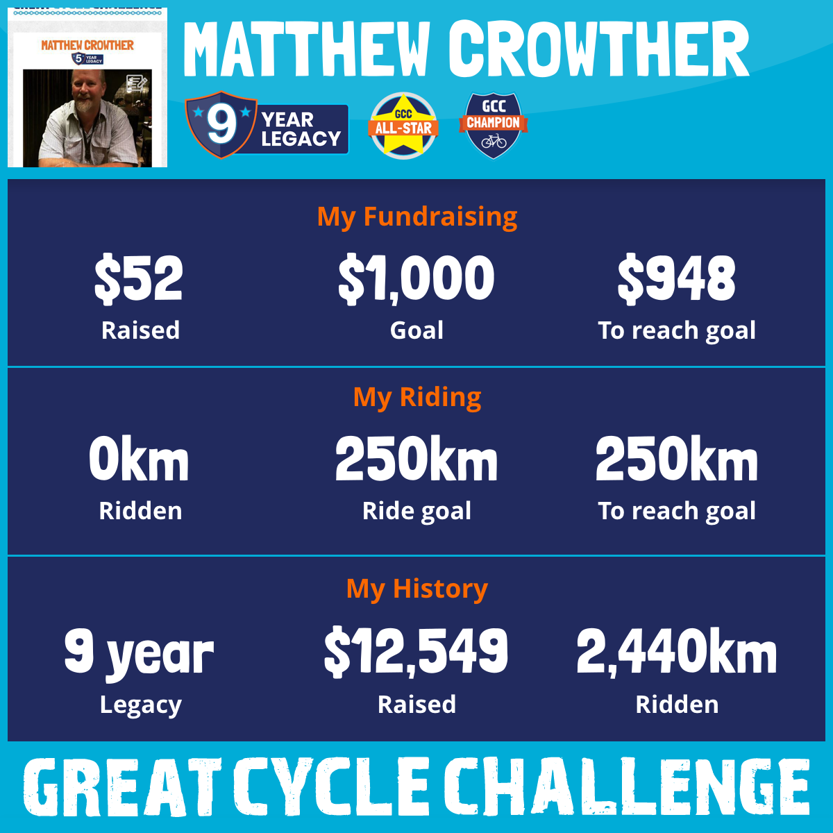180 km Ridden$748 Raised2023