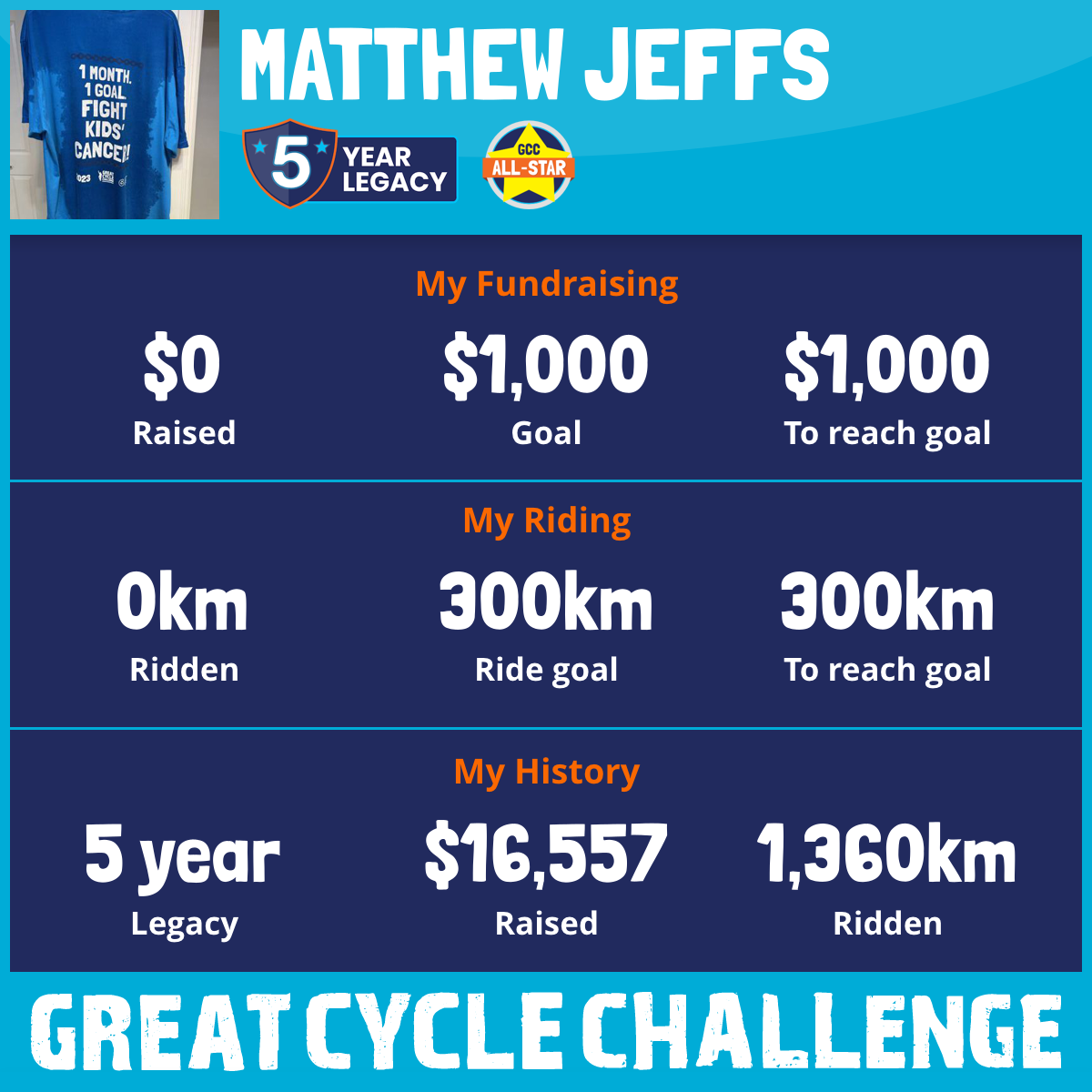 And so I am riding and raising funds to support the Children's Medical Research Institute to continue their work into the prevention, diagnosis, treatment and finding a cure for childhood cancer.