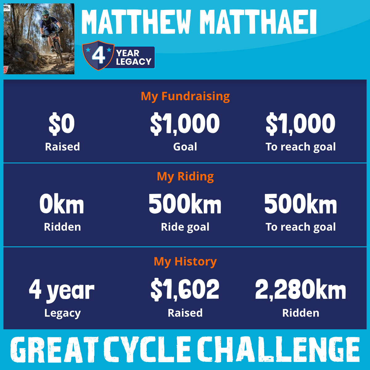 And so I am riding and raising funds to support the Children's Medical Research Institute to continue their work into the prevention, diagnosis, treatment and finding a cure for childhood cancer.
