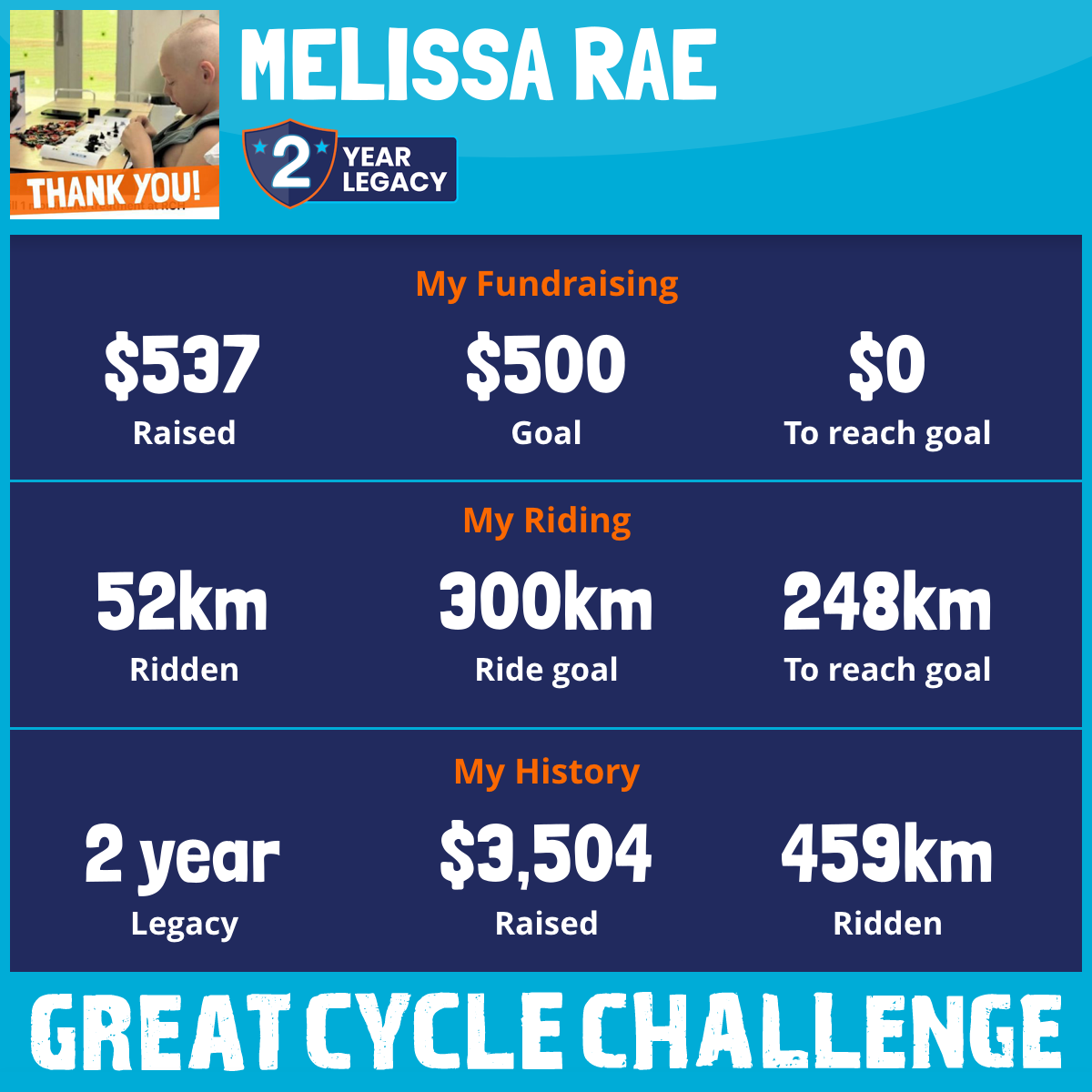 And so I am riding and raising funds to support the Children's Medical Research Institute to continue their work into the prevention, diagnosis, treatment and finding a cure for childhood cancer.