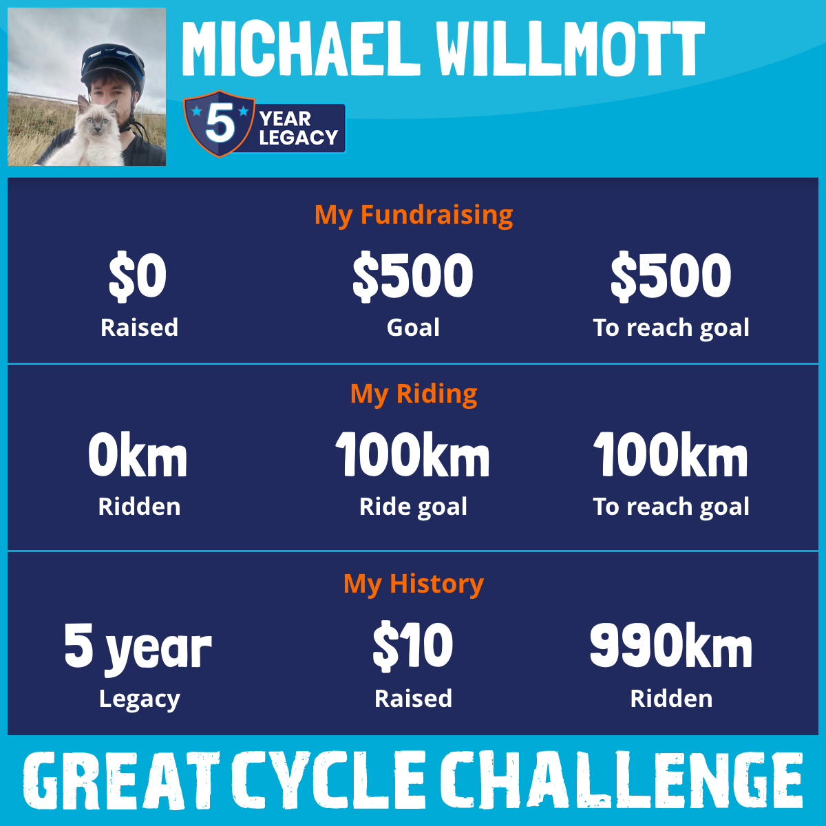 I am riding 100 km for John. Please sponsor me and support my challenge to fight kids' cancer and save little lives.