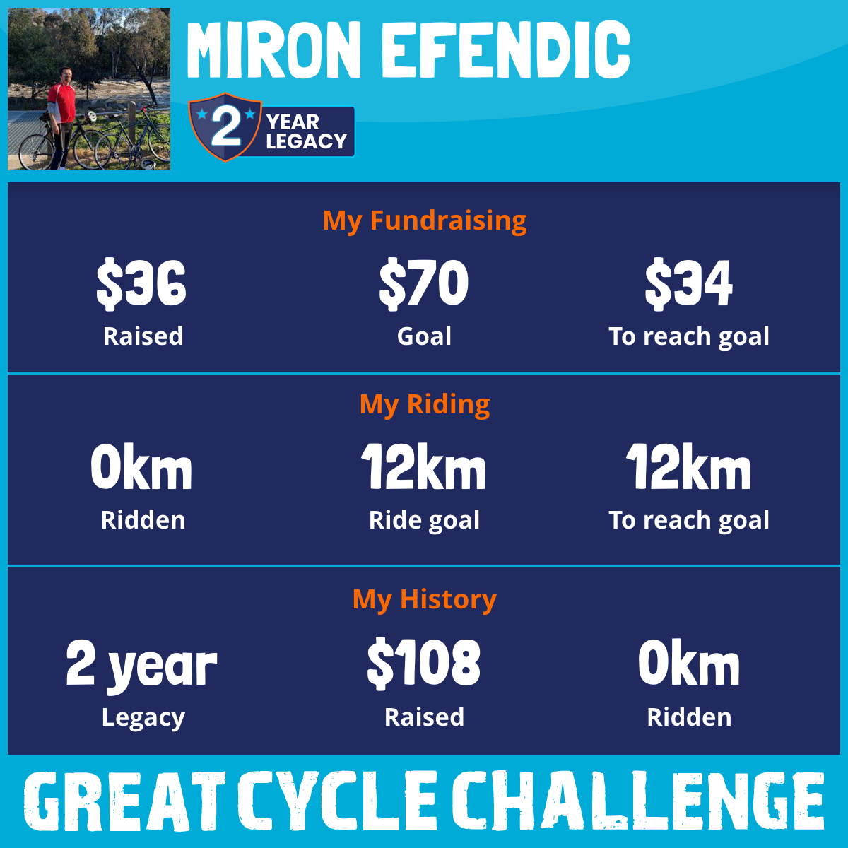 I am riding 12 km in memory of my brother, Damir. Please sponsor me and support my challenge to fight kids' cancer and save little lives.