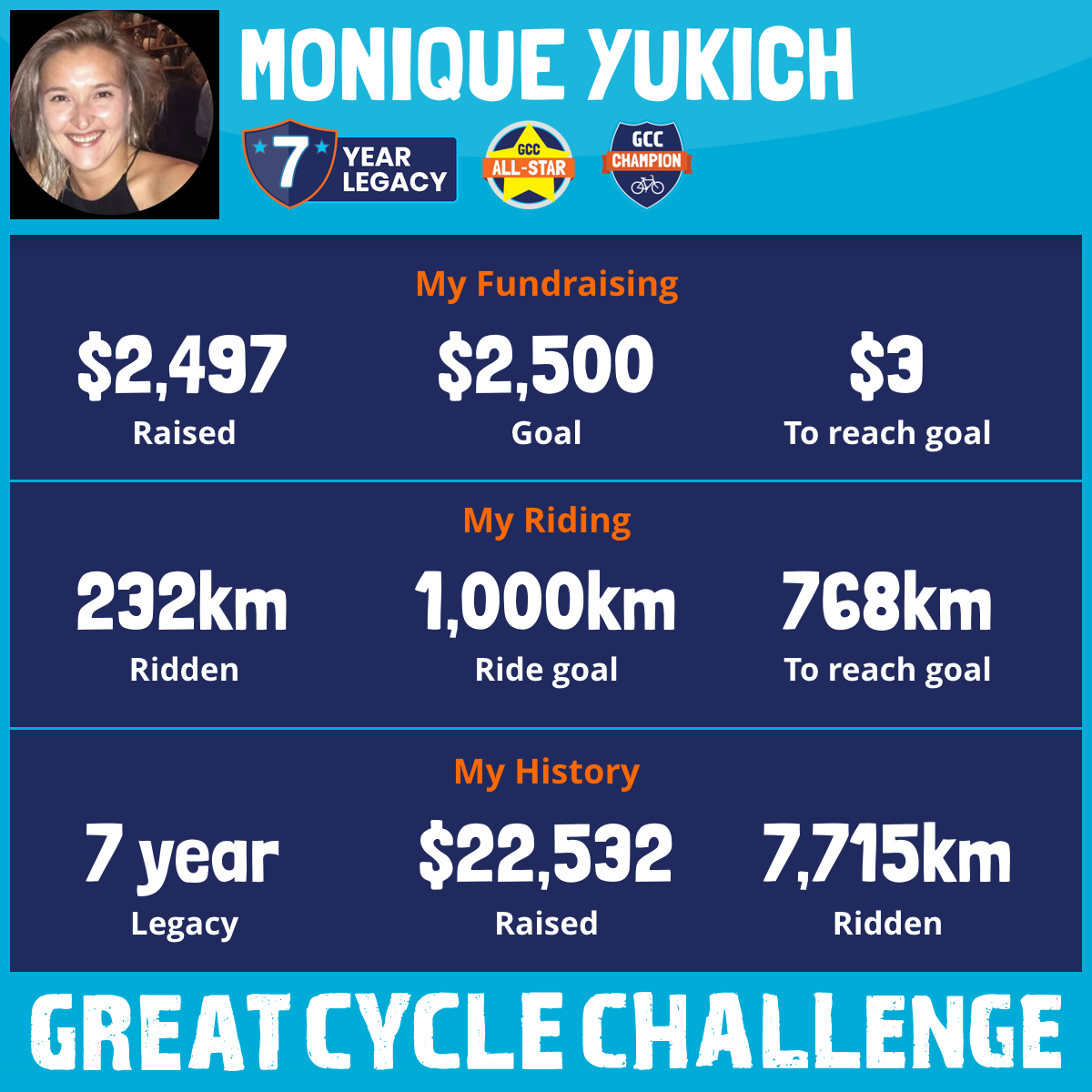 And so I am riding and raising funds to support the Children's Medical Research Institute to continue their work into the prevention, diagnosis, treatment and finding a cure for childhood cancer.