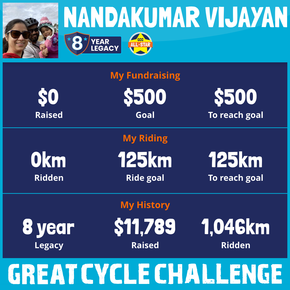 233 km Ridden$1,184 Raised2023