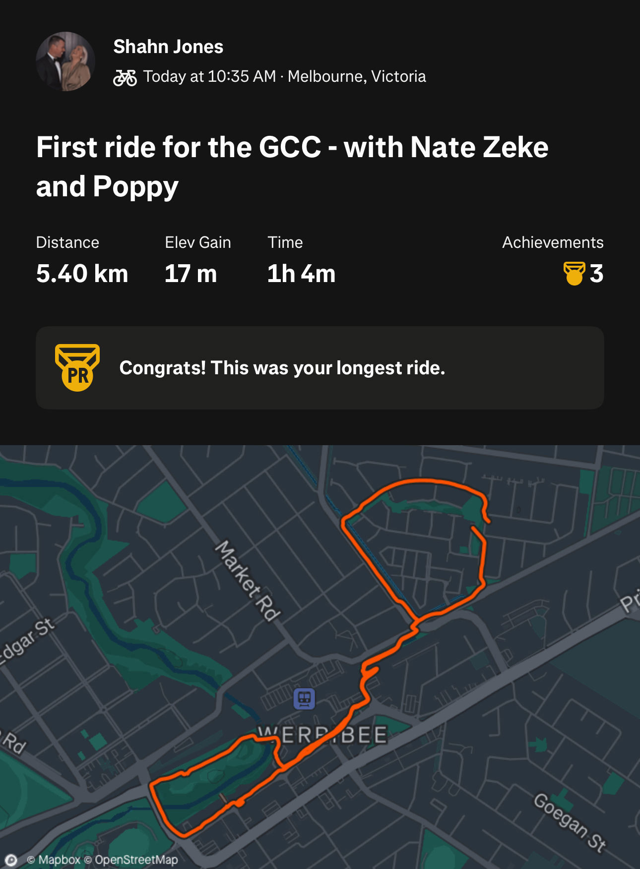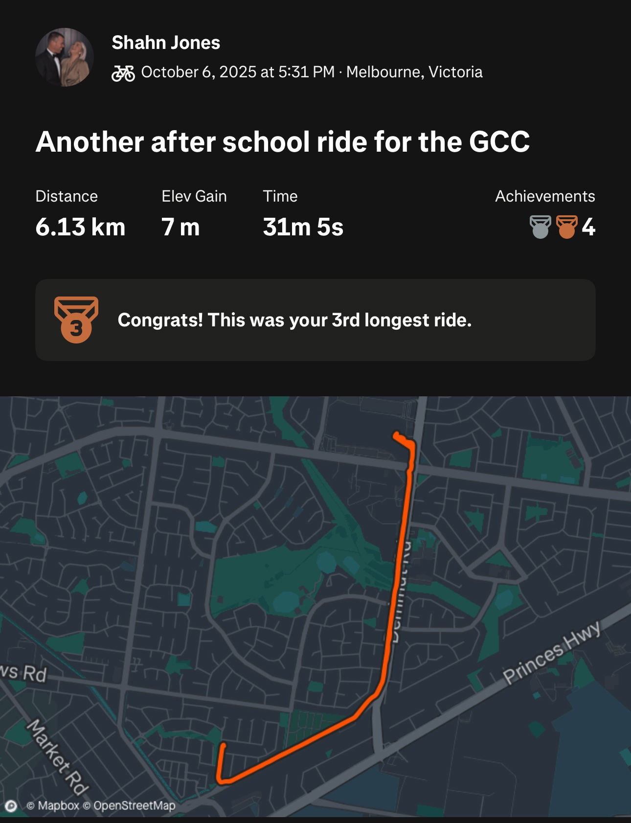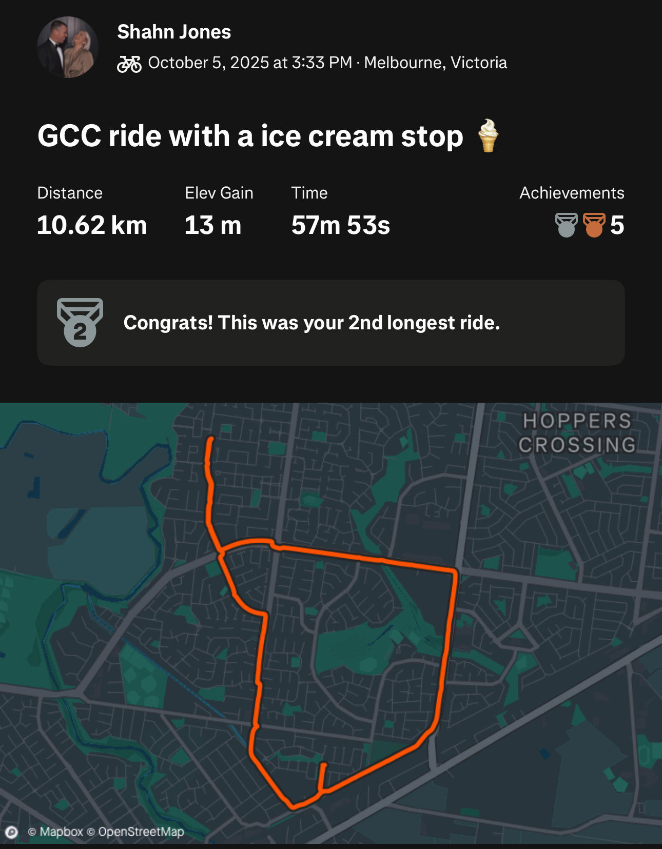 5.0 km ride - First ride to start our GCC campaign - Wednesday, October 1, 2025