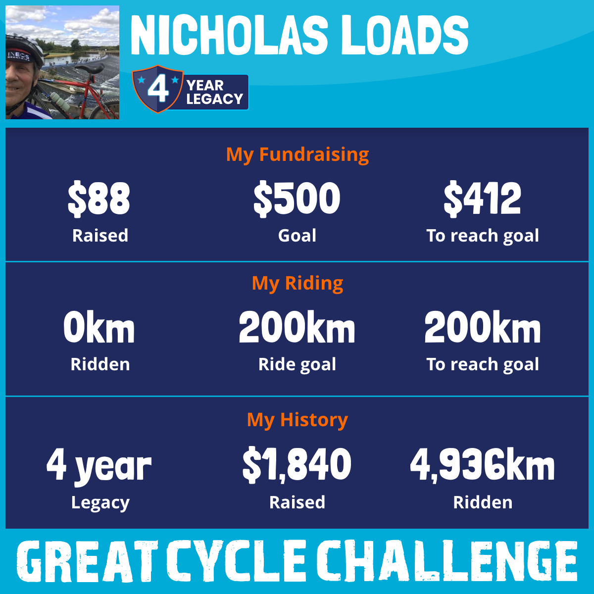 And so I am riding and raising funds to support the Children's Medical Research Institute to continue their work into the prevention, diagnosis, treatment and finding a cure for childhood cancer.