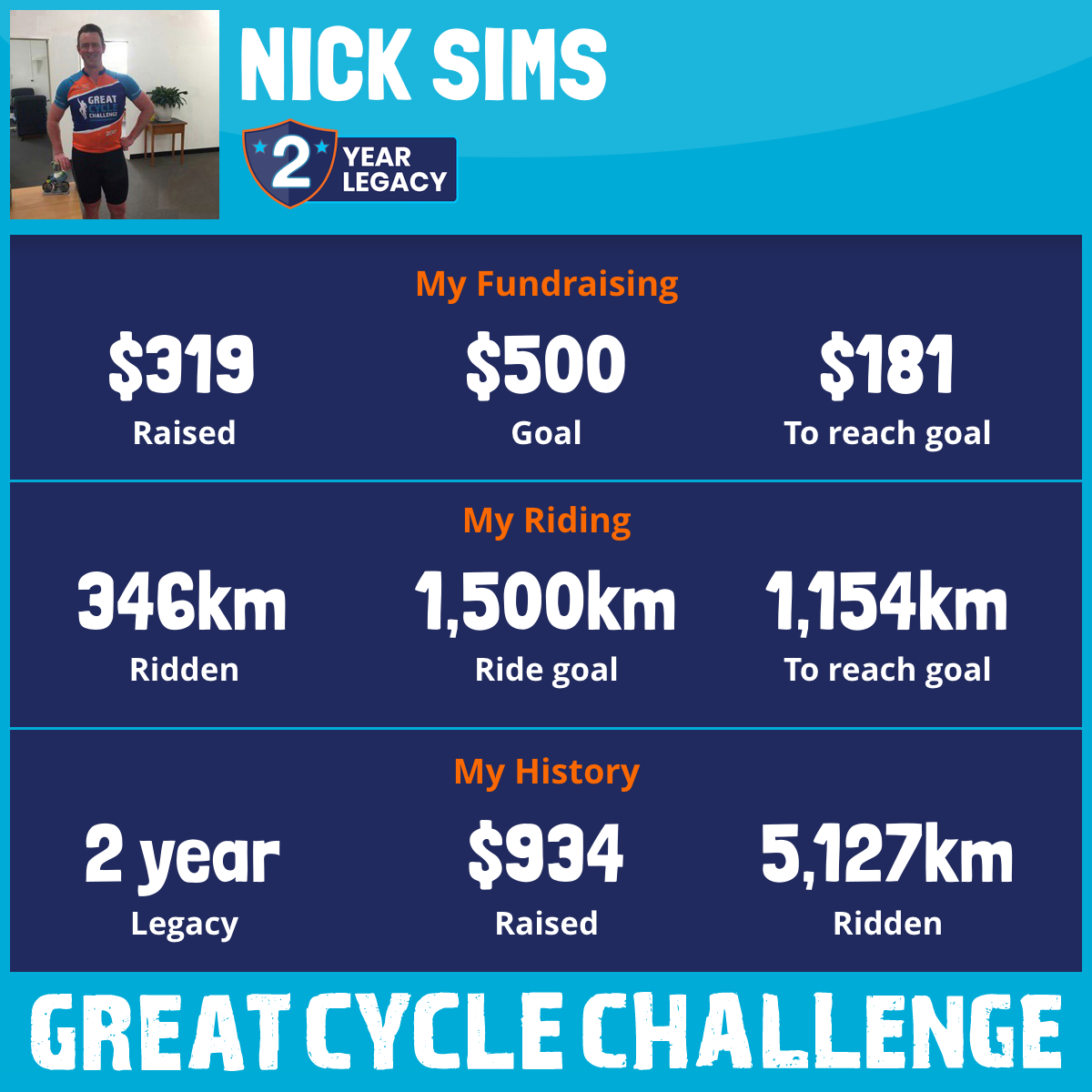 4,781 km Ridden$615 Raised2017