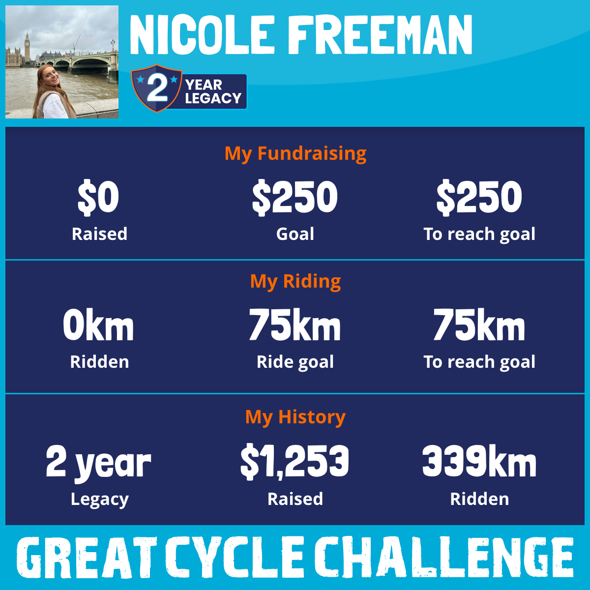 339 km Ridden$1,253 Raised2024
