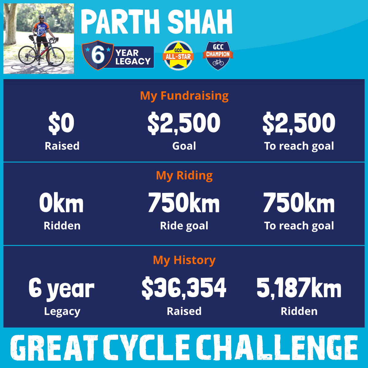 1,175 km Ridden$7,200 Raised2021