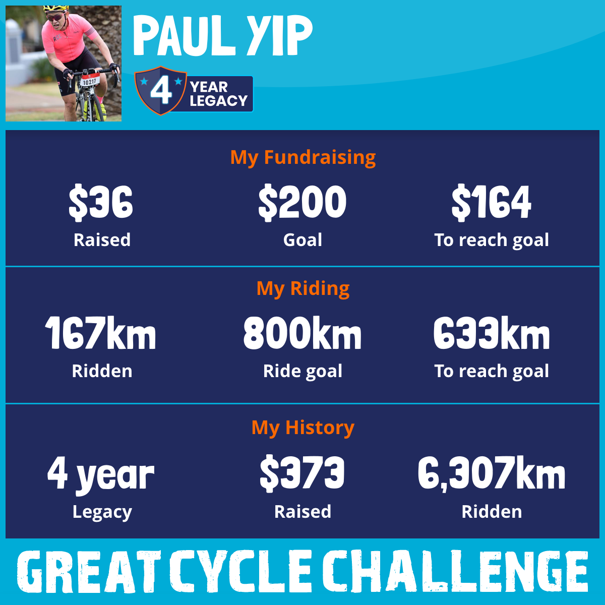 And so I am riding and raising funds to support the Children's Medical Research Institute to continue their work into the prevention, diagnosis, treatment and finding a cure for childhood cancer.
