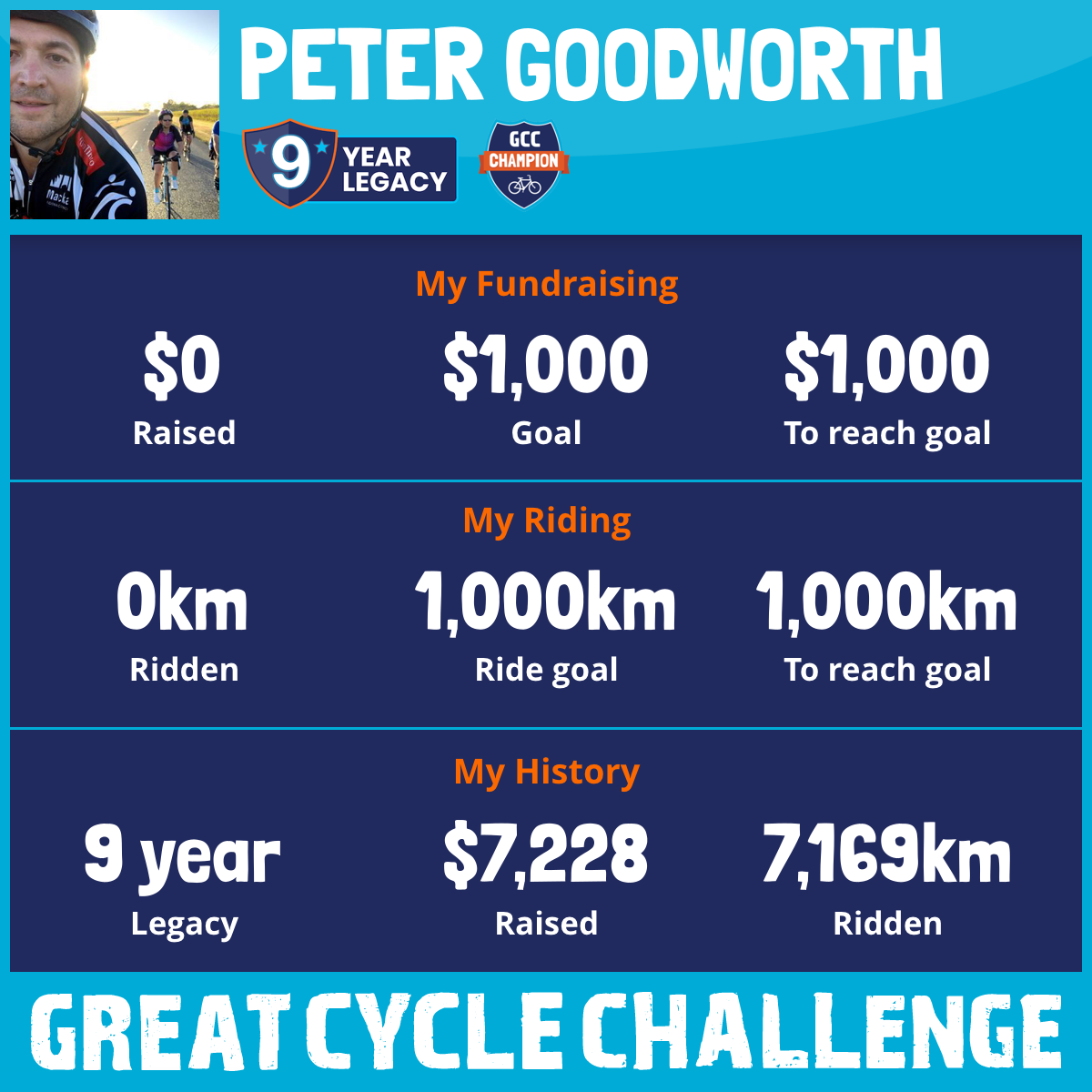 1,445 km Ridden$1,878 Raised2022