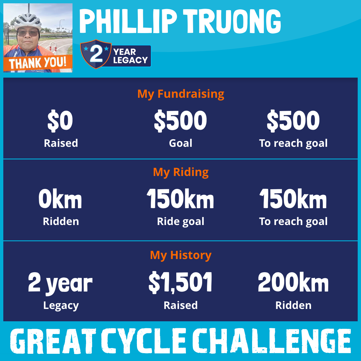 200 km Ridden$1,501 Raised2024