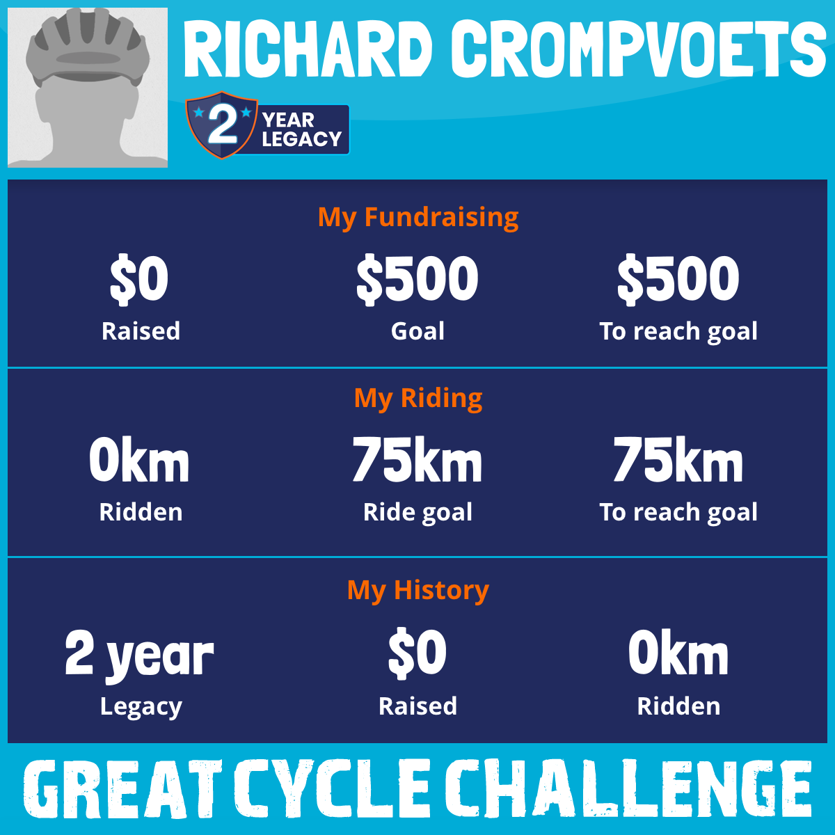 I am riding 75 km in memory of my friend, Neville. Please sponsor me and support my challenge to fight kids' cancer and save little lives.