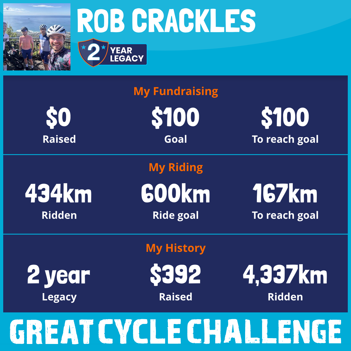 3,904 km Ridden$392 Raised2024