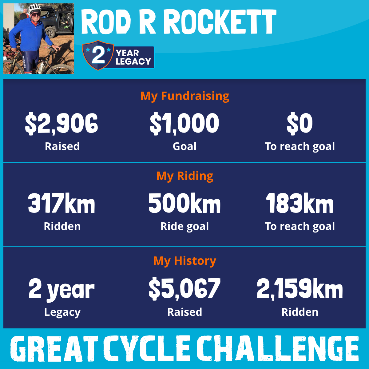 317 km Ridden$2,906 Raised2025