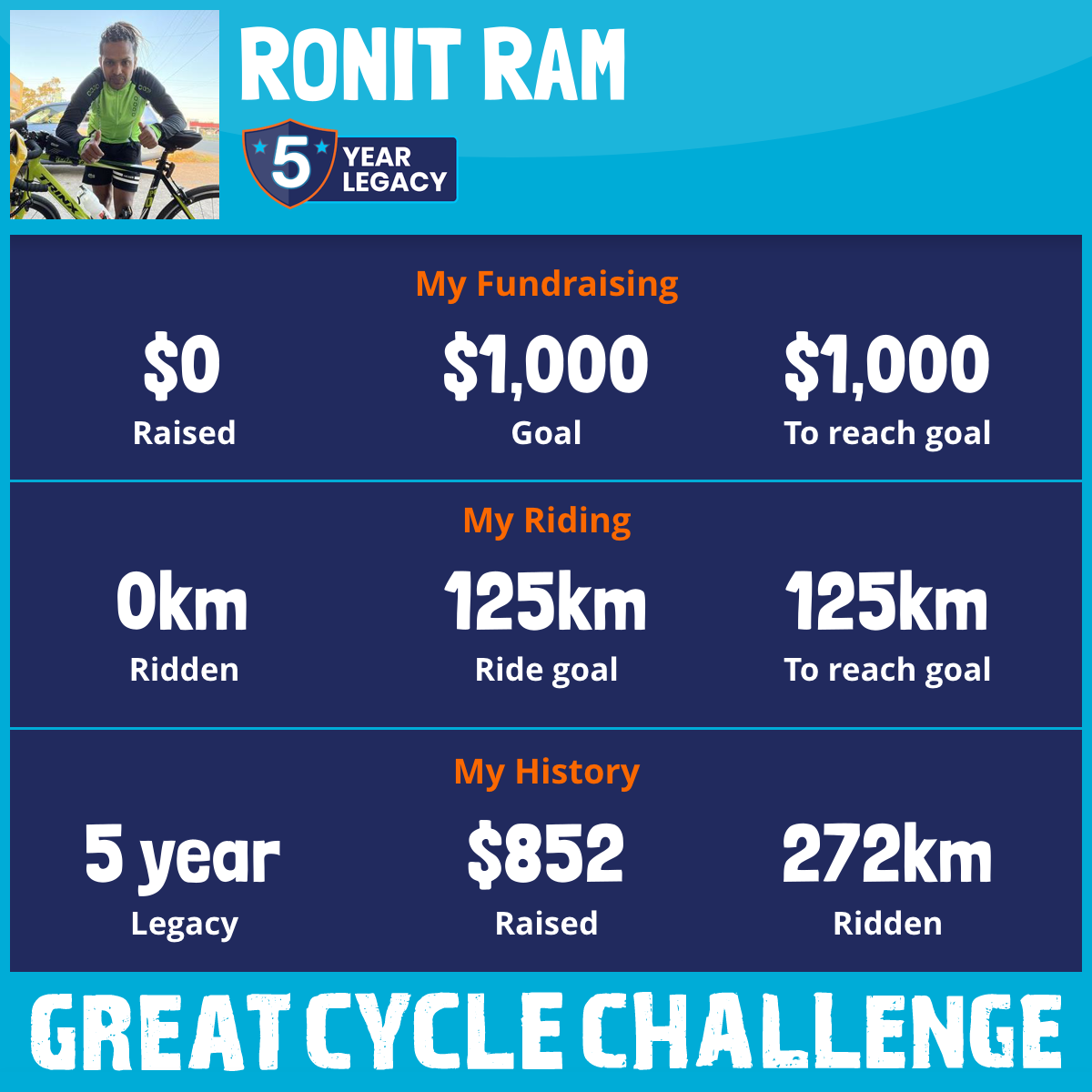 And so I am riding and raising funds to support the Children's Medical Research Institute to continue their work into the prevention, diagnosis, treatment and finding a cure for childhood cancer.