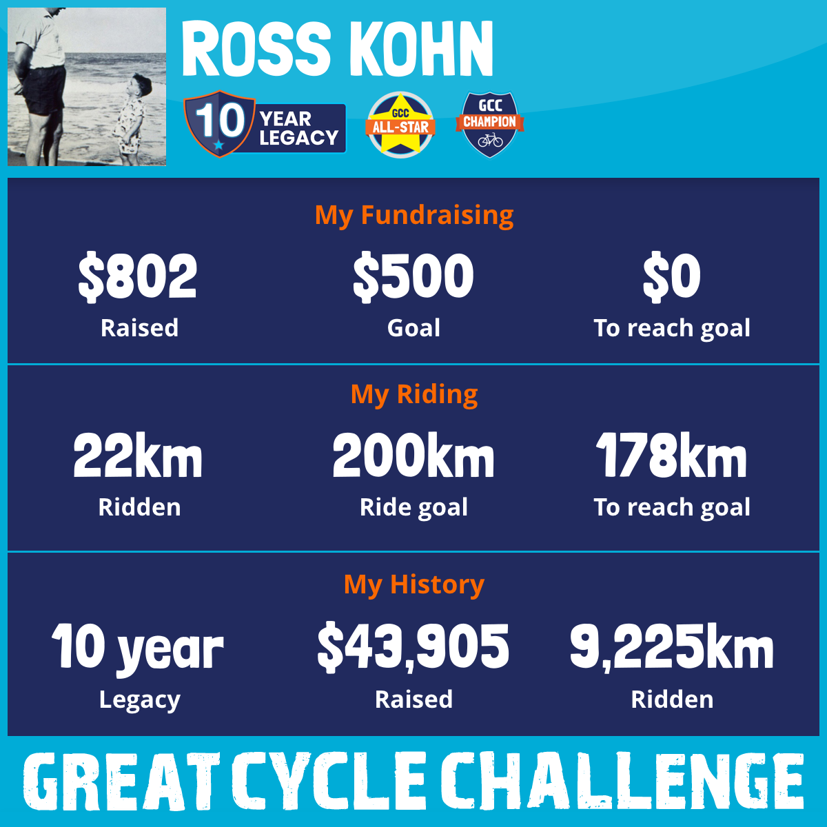 And so, I am riding and raising funds to support the Children's Medical Research Institute to continue their work into the prevention, diagnosis, treatment and finding a cure for childhood cancer.