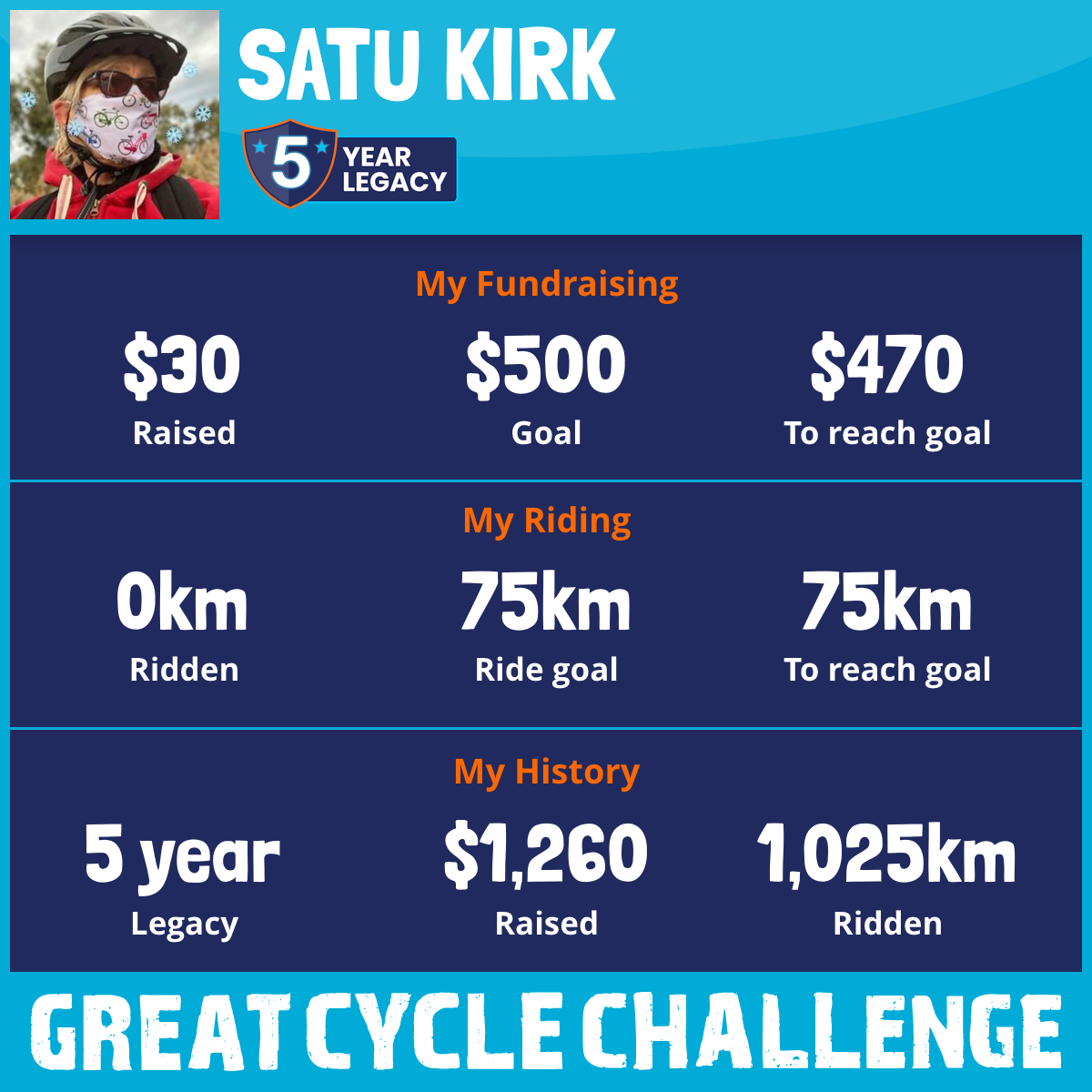 I am riding 75 km in memory of my mum, My dad and my mum. Please sponsor me and support my challenge to fight kids' cancer and save little lives.