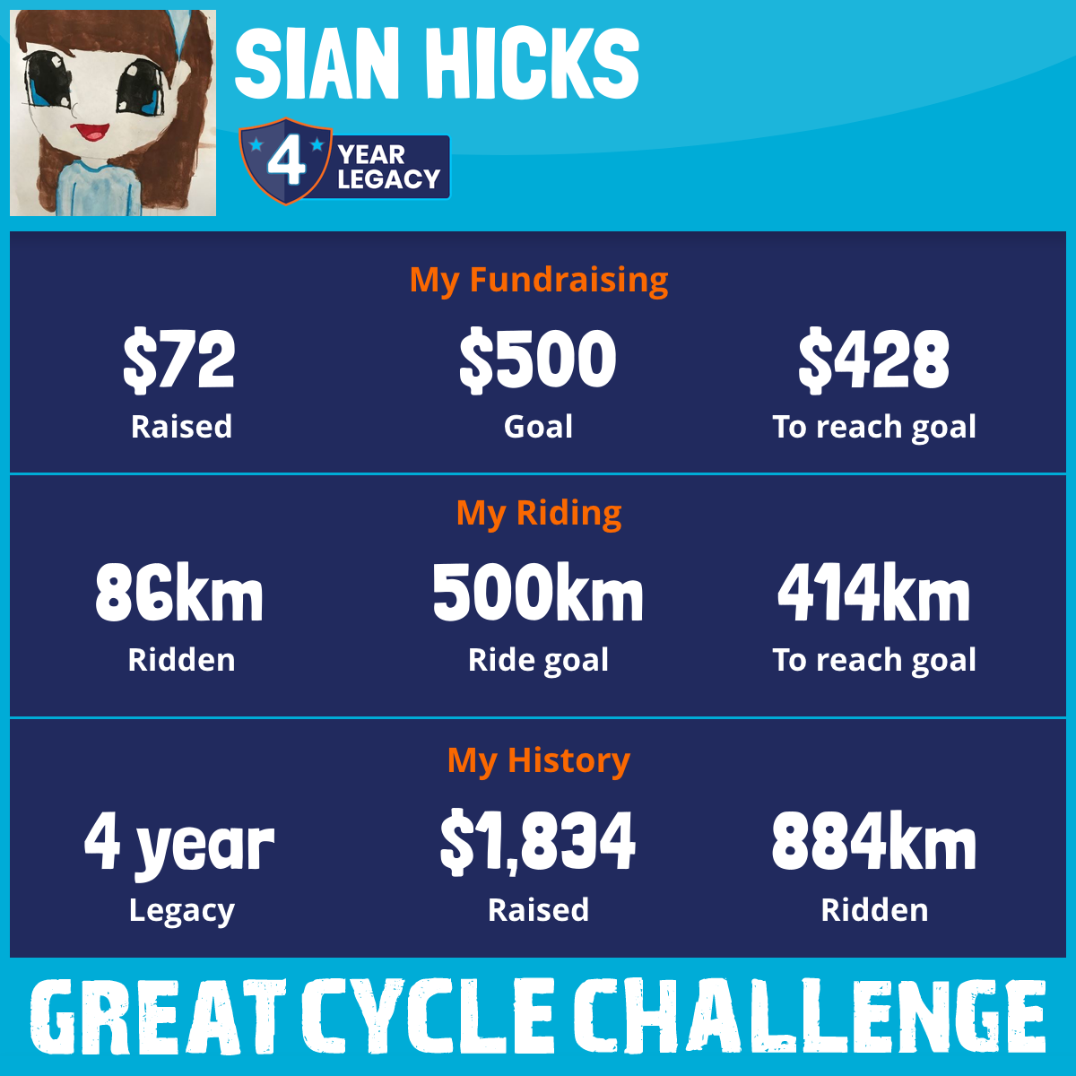 And so I am riding and raising funds to support the Children's Medical Research Institute to continue their work into the prevention, diagnosis, treatment and finding a cure for childhood cancer.
