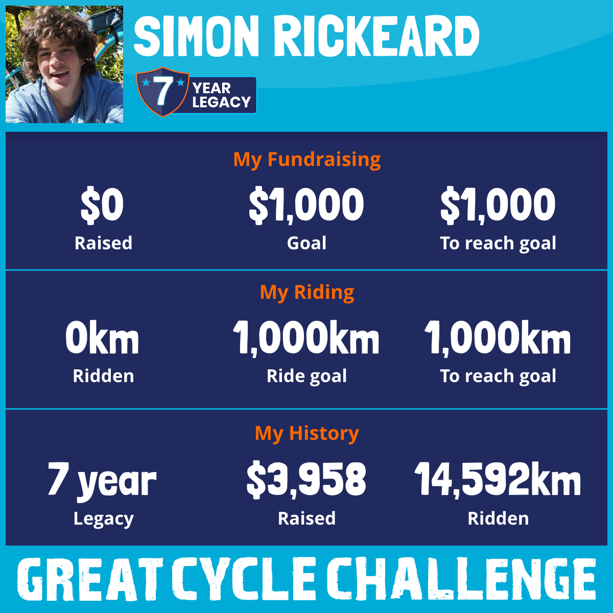 Hello This is my 7th Year doing the Great Cycle Challenge to fight kids' cancer!