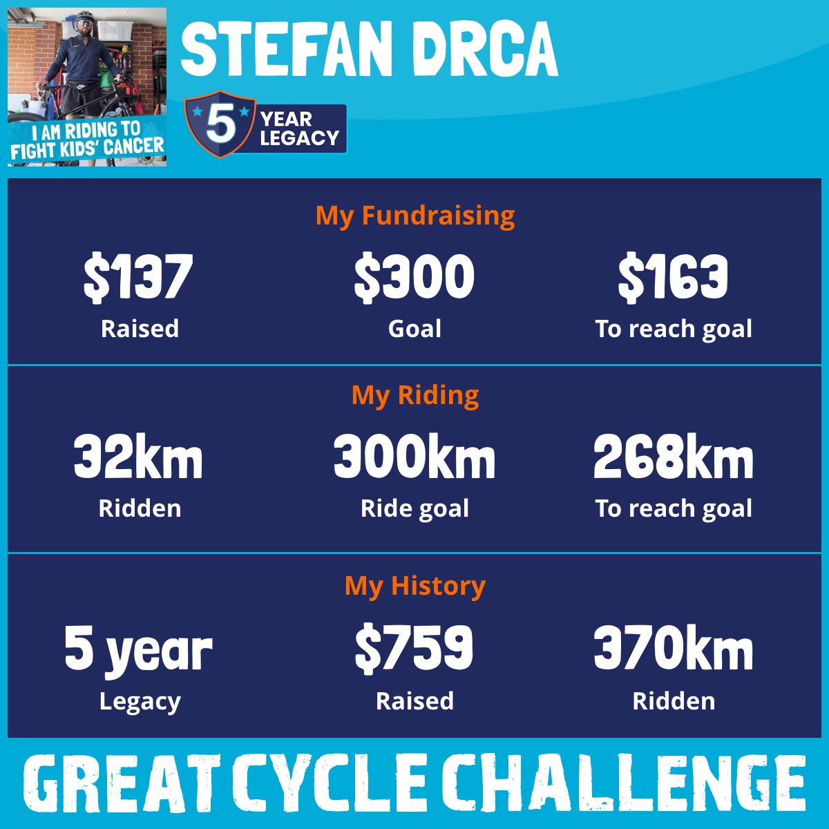 In Australia, 3 children die of cancer every week. Please sponsor me and support my challenge to fight kids' cancer and save little lives!