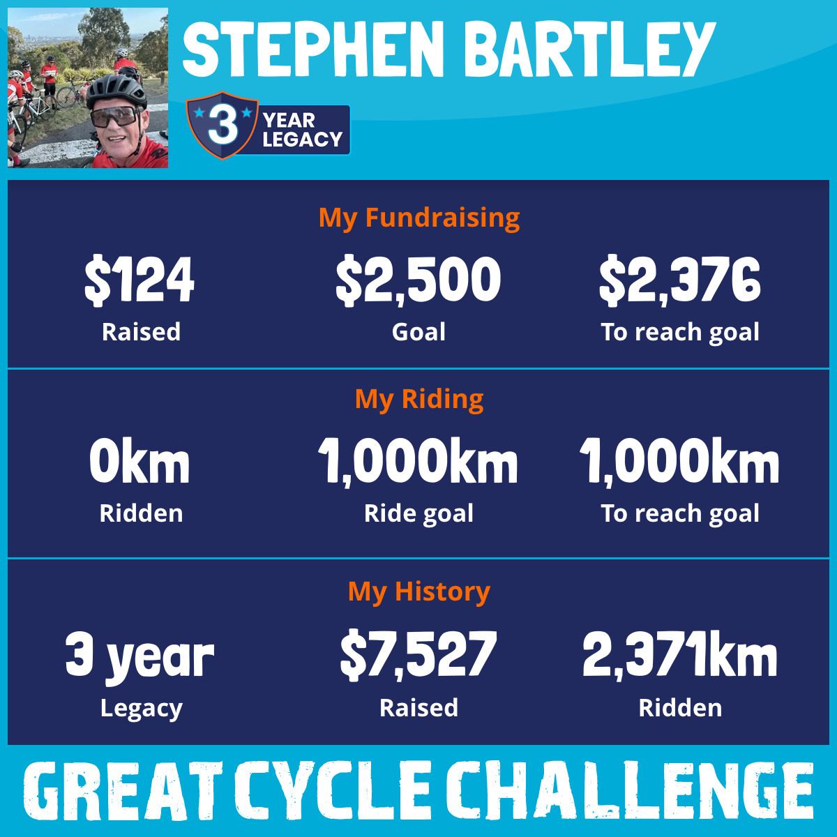 1,684 km Ridden$6,885 Raised2024