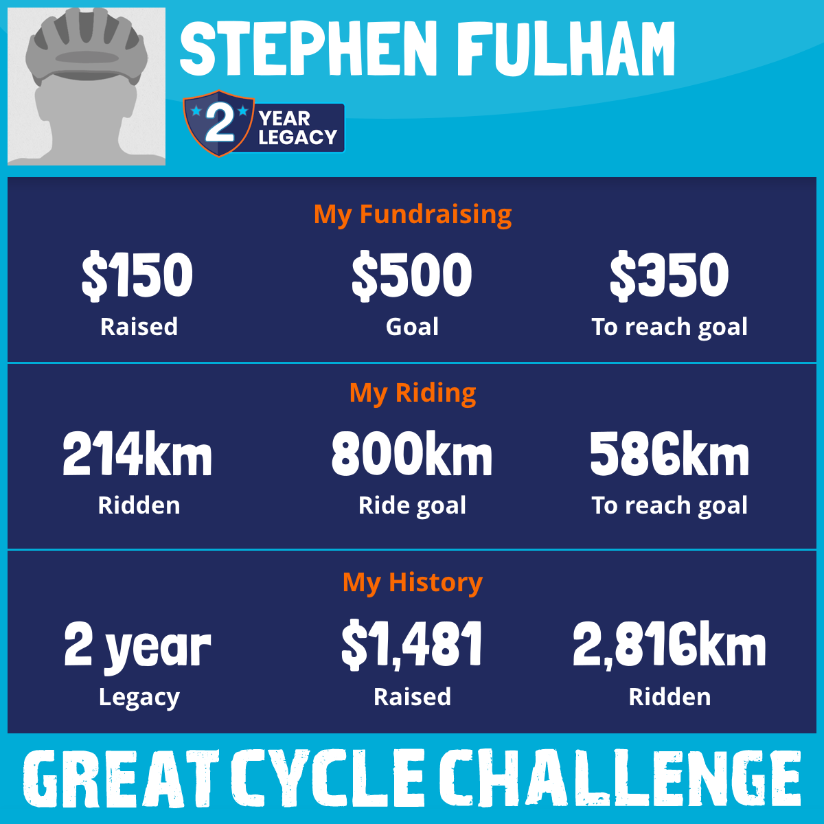 And so I am riding and raising funds to support the Children's Medical Research Institute to continue their work into the prevention, diagnosis, treatment and finding a cure for childhood cancer.