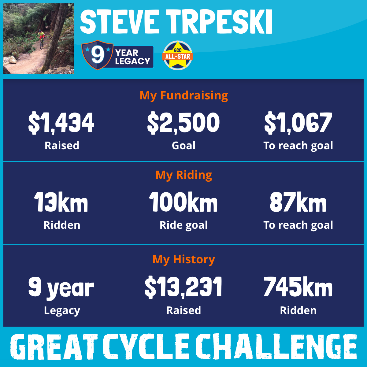 And so I am riding and raising funds to support the Children's Medical Research Institute to continue their work into the prevention, diagnosis, treatment and finding a cure for childhood cancer.