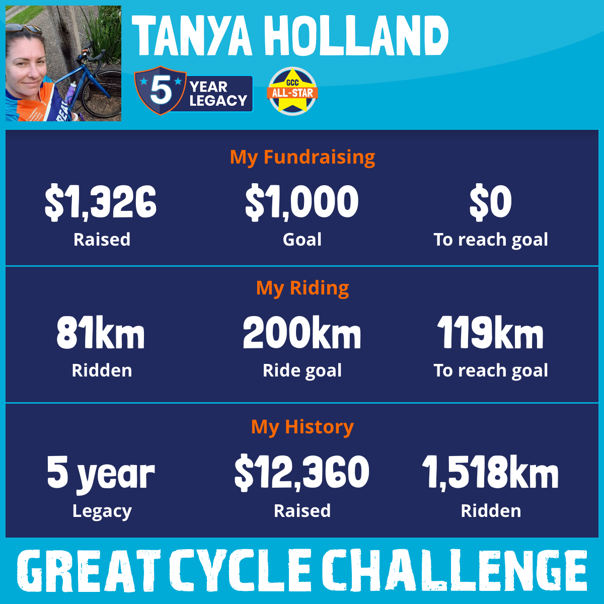 81 km Ridden$1,326 Raised2025