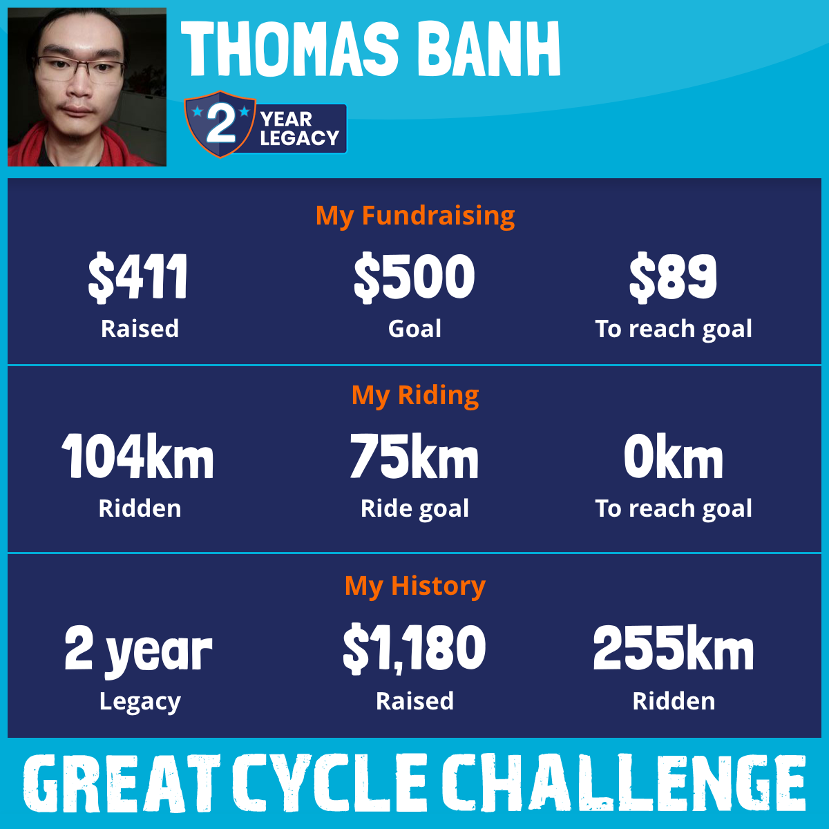 And so I am riding and raising funds to support the Children's Medical Research Institute to continue their work into the prevention, diagnosis, treatment and finding a cure for childhood cancer.