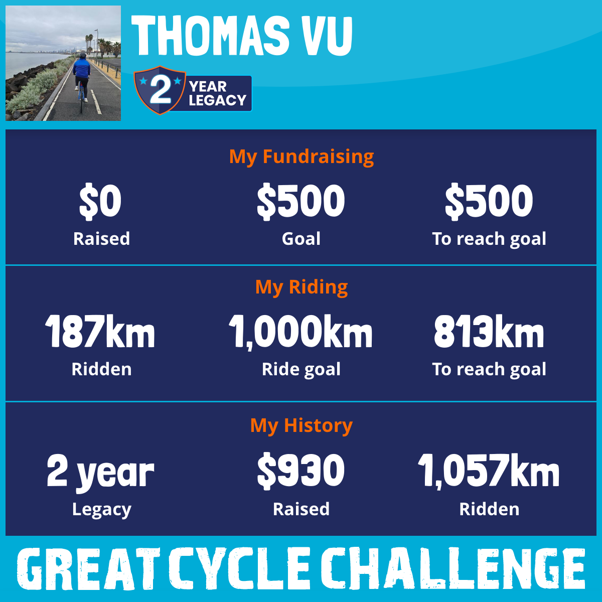 And so I am riding and raising funds to support the Children's Medical Research Institute to continue their work into the prevention, diagnosis, treatment and finding a cure for childhood cancer.